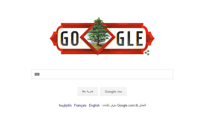 Lebanon flag appears on Google’s logo with the with a cedar tree replacing the second letter “o” of the word Google.