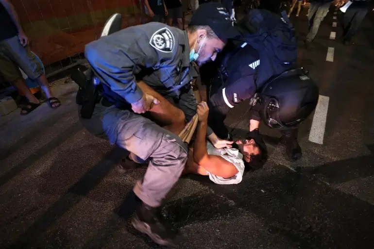 At least 38 Israeli were arrested in the street protests that took place just three days after Israeli Parliament approved an edict to limit the scope of such demonstrations.