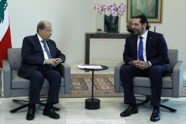 President Michel Aoun welcomed on Tuesday afternoon the prime minister-designate Saad Hariri at Baabda Palace.