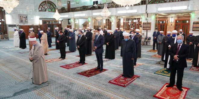 The President performed al-Maghrib prayers, led by Sheikh, Abdul-Fatah al-Bozom, Mufti of Damascus.