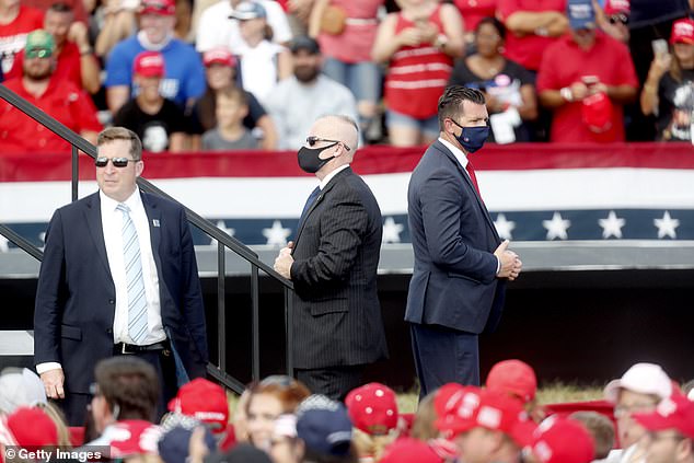 At these rallies, agents stand between the president and his supporters, many of whom are not wearing face masks and who don’t practice social distancing. While Trump stands on a stage above and away from the crowd, several agents stand in the pit between the stage area and supporters. They also fan out to work the perimeter.