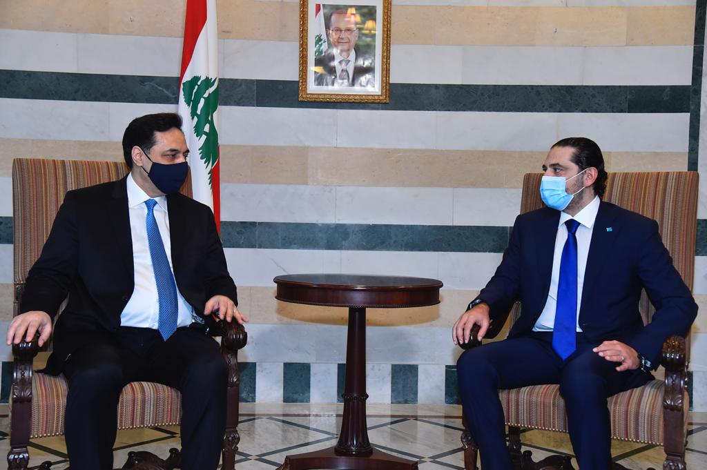 Prime Minister-designate Saad Hariri visited today the Grand Serial, where he met with caretaker Prime Minister Hassan Diab to express his solidarity with him after his indictment in Beirut’s port explosion.