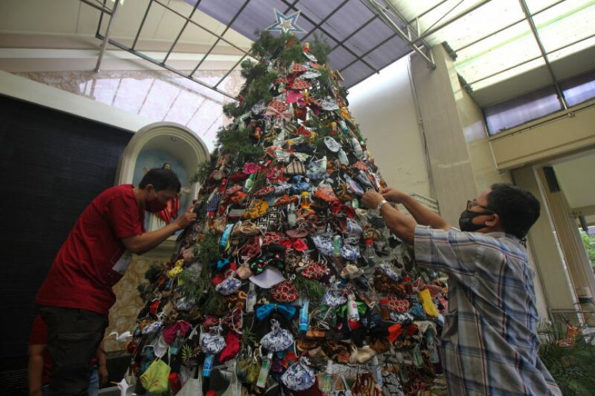 Indonesia church decorates Christmas tree with masks, sanitisers to promote COVID awareness
