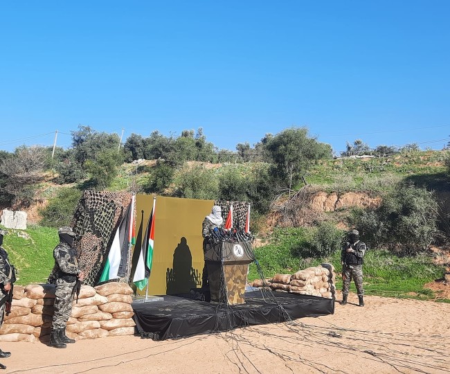 In a press conference on Tuesday, Abu Hamza, spokesman of Islamic Jihad movement’s Al-Quds Brigades announces the start of the exercise, stressing that such move is a message of the Palestinian Resistance’s readiness to confront any Israeli aggression on Palestinian people.