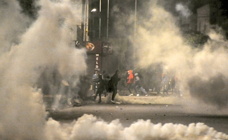 A few hundred protesters gathered Saturday on the central Tunis thoroughfare Avenue Bourguiba to demand the release of those arrested during clashes with police over the past week. Human rights groups say some 1,000 people were detained and dozens ordered jailed for vandalism and theft.