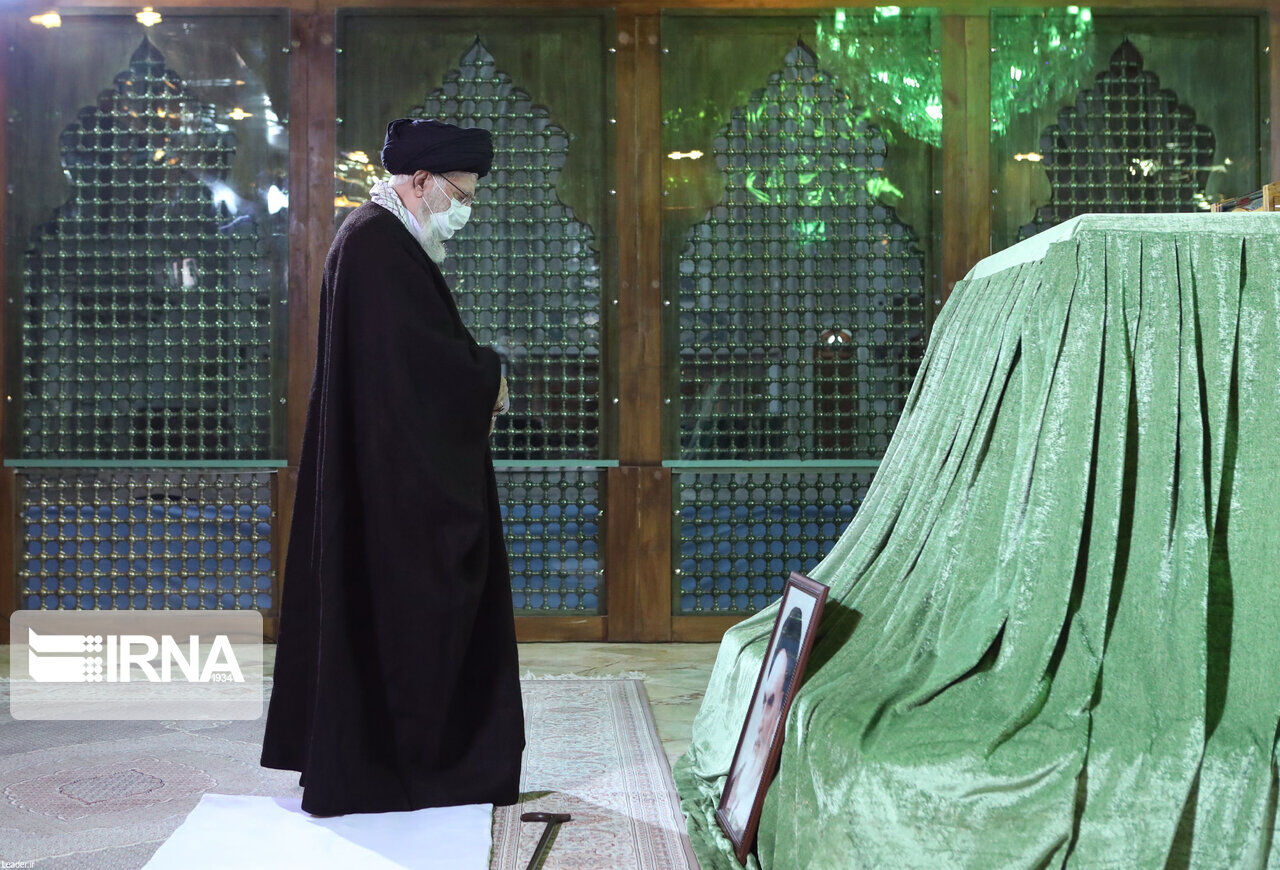 Supreme Leader of the Islamic Revolution Ayatollah Sayyed Ali Khamenei on Sunday and on the beginning of Ten-day Dawn paid tribute to Imam Khomeini at the mausoleum and then visited martyrs tomb in Behesht Zahra cemetery.