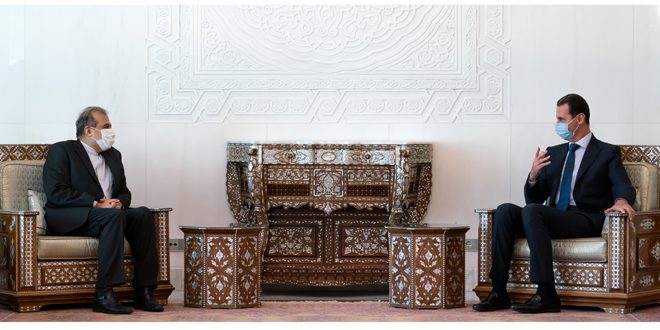 Talks during the meeting dealt with the strategic relations between Syria and Iran and aspects of bilateral relations, particularly in the economic domain in a way that helps the Syrian people confront the blockade and the coercive unilateral measures imposed on the country.