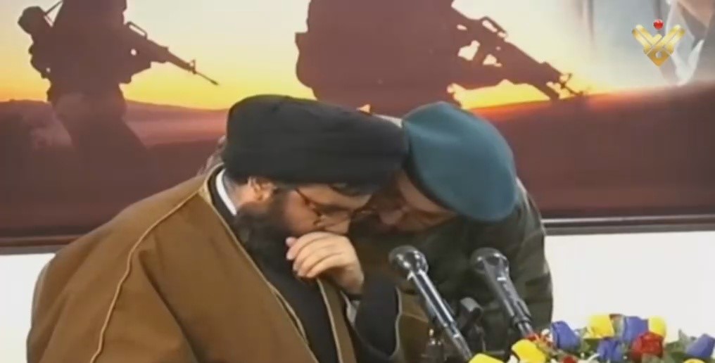 The video shows martyr Nughniyeh whispering in the ear of Sayyed Nasrallah about the details of the operations which proved later to be very efficient.