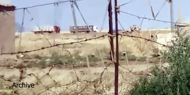 Local sources told SANA that the US occupation forces have brought a convoy of 12 trucks laden with Syrian wheat stolen from the silos in Tal Alou in al-Ya’arubyia area in Hasaka northern countryside to northern Iraq through Simalkah border crossing.