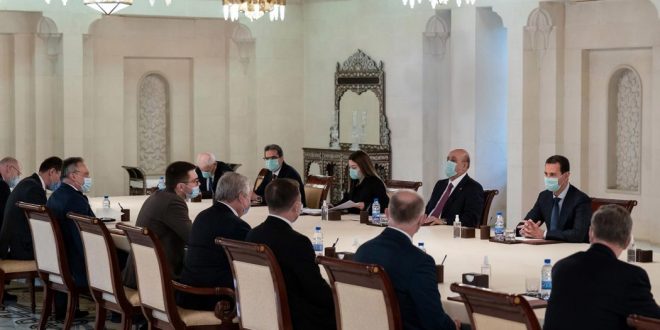 President Bashar al-Assad on Thursday received Special representative of the Russian president to Syria, Alexander Lavrentiev, and an accompanying delegation.