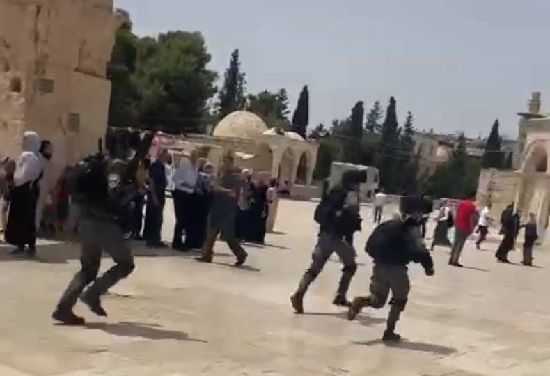 The Israeli occupation forces stormed the squares of Al-Aqsa Mosque, attacking the worshippers who performed Friday Prayers and celebrated the victory of the Palestinian resistance.