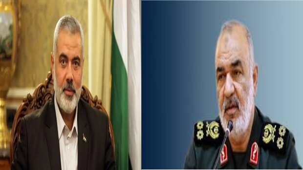Head of Hamas politburo, Esmail Haniyeh, received on Friday a phone call from the IRGC Commander, General Hussein Salami, as the victory of the Palestinian resistance over the Israeli enemy in Gaza war topped the discussion.