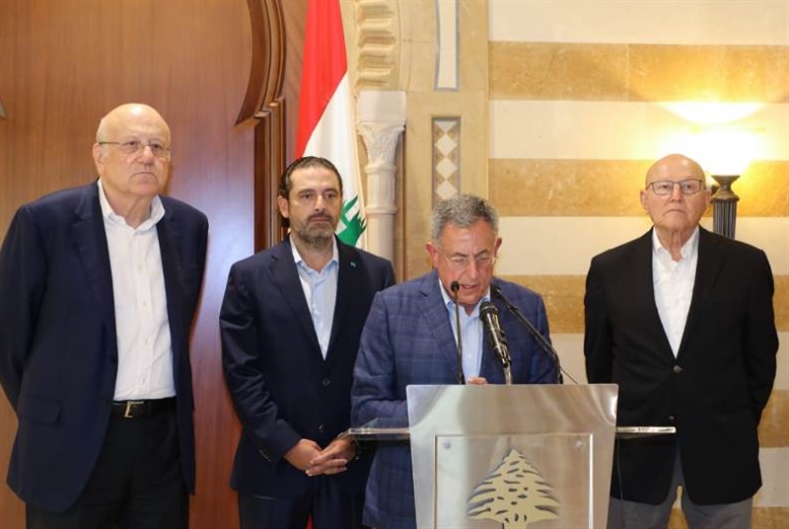 Former prime ministers: Najib Mikati, Fouad Siniora, Saad Hariri, and Tammam Salam, on Thursday issued a statement in the wake of the most recent developments that resulted after judicial investigator, Judge Tarek Al-Bitar, has summoned caretaker Prime Minister, Hassan Diab, over Beirut Port blast.