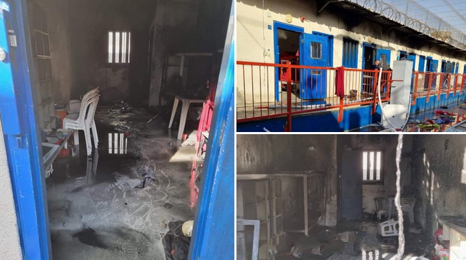 The Palestinian prisoners rebelled against the punitive measures taken by the Israeli occupation authorities in light of Gilboa escape operation, incinerating the dungeons at Negev jail.