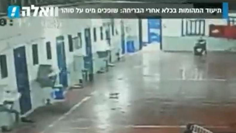 One of the cameras placed inside Gilboa jail in the Israeli-occupied city of Beisan showed a Palestinian prisoner throwing boiling water on one of the Zionist guards.
