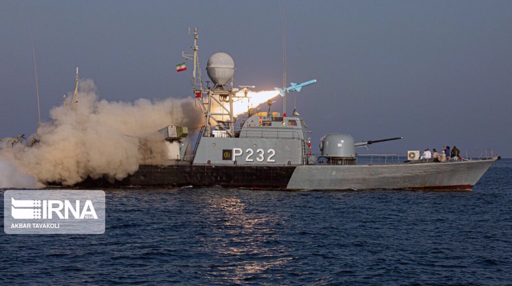 On the second day of the exercises, the Iranian Navy’s offshore units flew the homegrown and radar-evading Omid drone to jam the radars of the mock enemy stationed on the coast. The unmanned aerial vehicle is said to be fairly effective in electronic warfare.