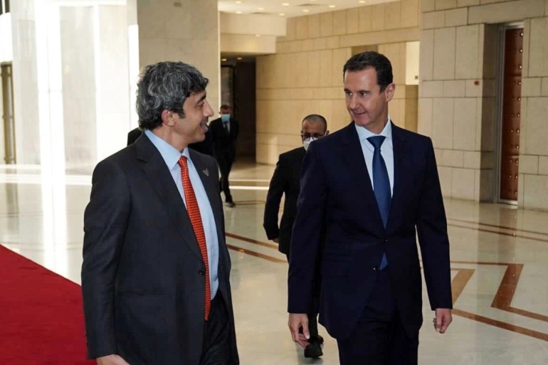 Talks between Assad and Zayed focused on bilateral relations between Syria and the UAE, according to a statement from Syria’s government.