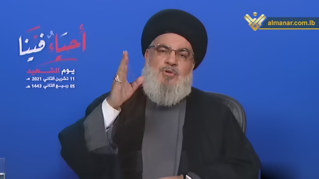 Sayyed Nasrallah refuted the claims about Hezbollah control of the Lebanese institutions by showing instances of the Party’s inability to change the official decision of the government, including the restoration of ties with Syria in order to sustain the economic cooperation in this regard, the approval of the Chinese, Russian and Iranian investments, and the recuse of the judicial investigator into Beirut Port blast as the Party sees he is politicizing the probe.