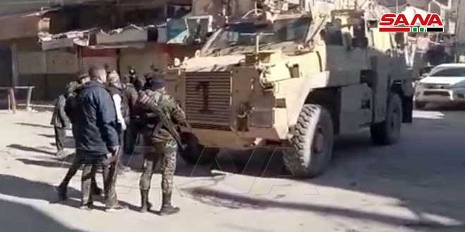 SANA reported that two military vehicles belonging to the US occupation forces tried to enter the center of Hasaka city next to al-Najma pharmacy in the middle of Palestine Street, and the Army’s checkpoint forced it to retreat and leave the area.