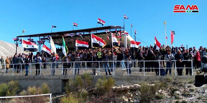 On the opposite side, citizens of Majdal Shams in the occupied Golan, commemorated the 40th anniversary of the comprehensive national strike as squares were decorated with national flags, and citizens came from villages of Buq’ata, Masada and Ain Qinya to Sultan al-Atrash Square in the center of Majdal Shams and marched to the opposite side of Ain al-Tine.