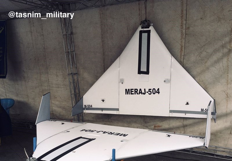 The unmanned aerial vehicle, dubbed Me’raj-504, was put on display at an exhibition held by the IRGC in Tehran on Sunday.