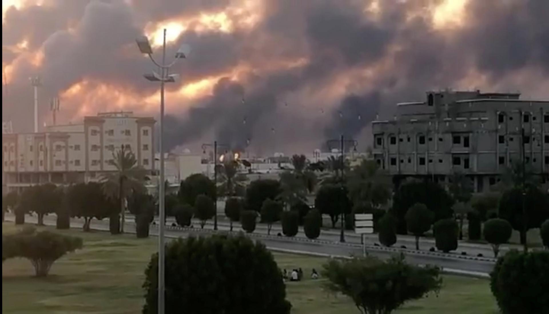 The Yemeni attack on Aramco facilities set off a huge fire near Jeddah’s Formula One circuit during televised practice sessions on Friday.