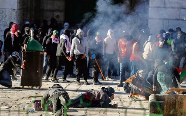 Dozens of Palestinians were injured as Israeli occupation forces stormed Al-Aqsa Mosque and attacked worshipers barricaded there for the fifth consecutive day.