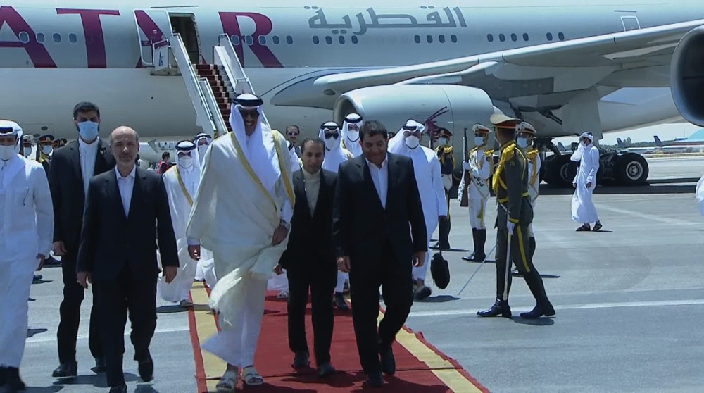 Qatar’s Emir Tamim bin Hamad Al Thani just arrived in Tehran on Thursday noon, heading a high-profile political and economic delegation.