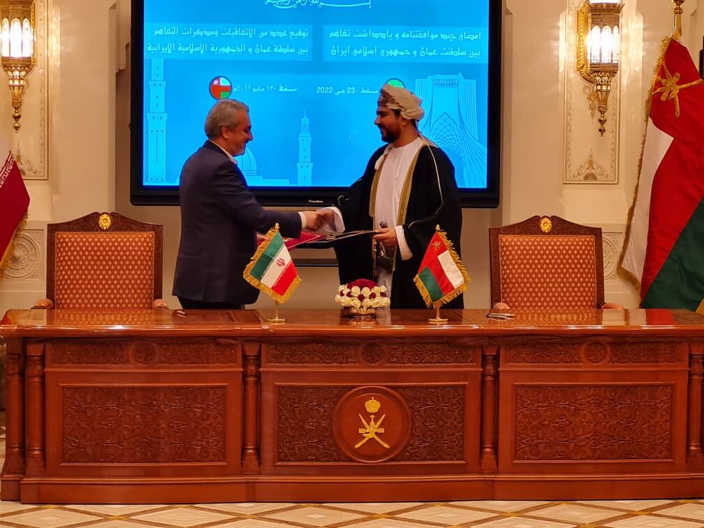 Iranian minister of industry, mine, and trade Reza Fatemi-Amin and Omani Minister of Commerce, Industry, and Investment Promotion Qais bin Mohammed Al Yousef on Monday signed a memorandum of understating.