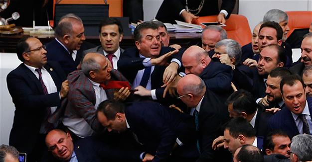 Turkish lawmakers on Thursday approved three more articles in a hugely controversial bill bolstering the powers of President Recep Tayyip Erdogan, as lawmakers brawled and threw objects in a session of high tension.