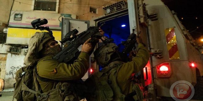 The occupation troops raided several neighborhoods in Jenin city, amid fire, causing the injury of two young men and arresting four others, according to Maan News Agency.