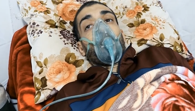 Hamas military wing, Al-Qassam Brigades, circulated on Tuesday a video that shows one of four Zionist military prisoners after the deterioration of his health conditions.