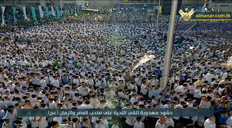 Huge crowds of Imam Mahdi lovers, of all ages, gathered in Ashura square to salute the 12th Shia Imam, reiterate allegiance to his leadership, and pray for His apparition as He is believed to be in occultation.