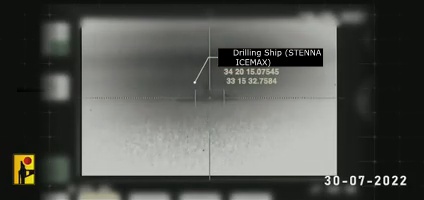 The video shows surveillance scenes taken from land and air, some form yesterday, for Israeli vessels at the Karish field near the Lebanese maritime borders.