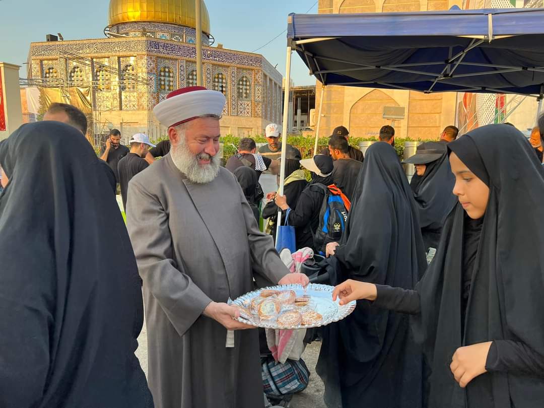 The photos show Sunni scholars serving mourners walking on the road between the holy cities of Najaf and Karabala on Saturday (September 10, 2022).