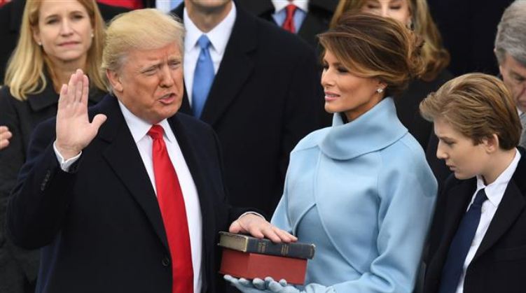 He placed his hand on two copies of the Bible — his own and one used by Abraham Lincoln — to take the solemn oath. “I, Donald John Trump, do solemnly swear that I will faithfully execute the office of president of the United States, and will to the best of my ability, preserve, protect and defend the Constitution of the United States. So help me God,” he declared, before pumping his fist in the air several times.