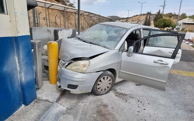 A Palestinian driver slammed into an Israeli guard post at a crossing in the northern West Bank on Saturday, in what Israeli occupation authorities described as a suspected ramming attempt.