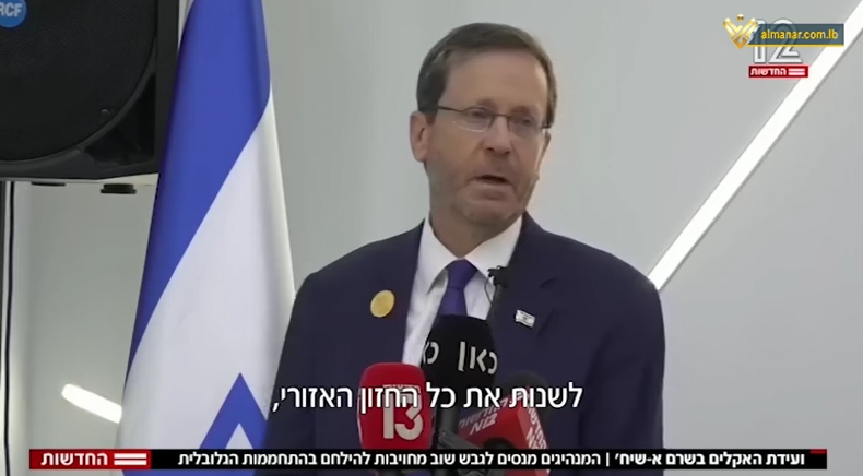 Israeli President Isaac Herzog attended the climate conference in Egypt instead of PM Yair Lapid who rejected to represent the occupation entity after losing the Knesset elections.