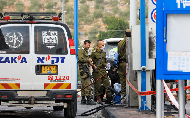 The Palestinian attacker then stabbed three people at and adjacent to a nearby gas station, before he fled in an apparently stolen vehicle.