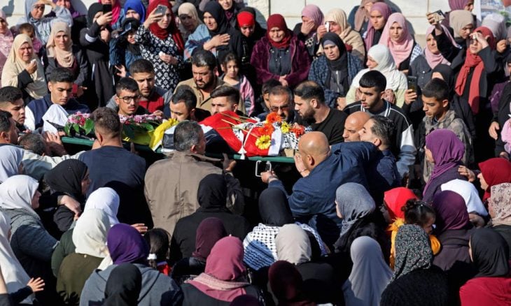 Hundreds of Palestinian mourners in Beit Rima town participated in the funeral procession of a Palestinian teen, Diaa Al-Rimawi, who was shot dead by Israeli occupation forces on Thursday evening in the town of Aboud, near Ramallah.