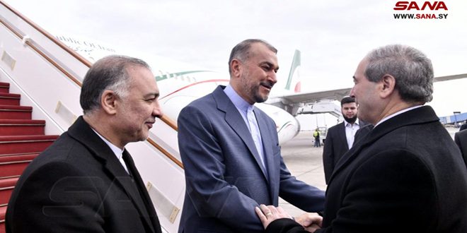 Syrian Foreign and Expatriates Minister Fayssal Mikdad received the top Iranian diplomat upon his arrival in Damascus International Airport, SANA news agency reported.