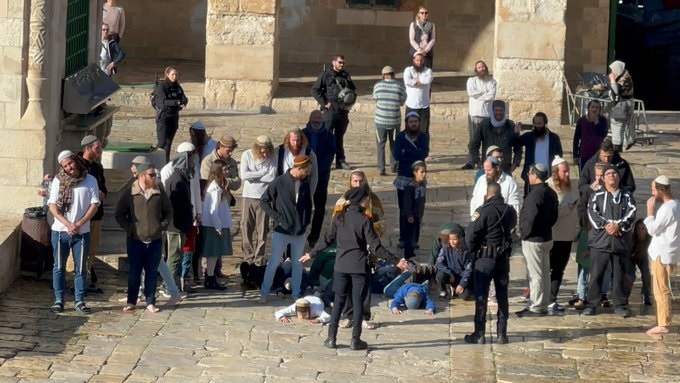 Colonial Israeli #settlers raised the occupation flag during their incursion into the blessed #Al_Aqsa Mosque compound this morning. pic.twitter.com/aqkahiYxbB
