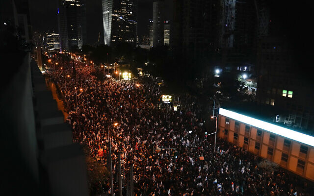 “These people are trying to save their country, and we come to protest with them because we will not let this happen. We will fight in the streets, we will fight in the Knesset, we will fight in the courts. We will save our country because we are not willing to live in a non-democratic state,” Lapid said.