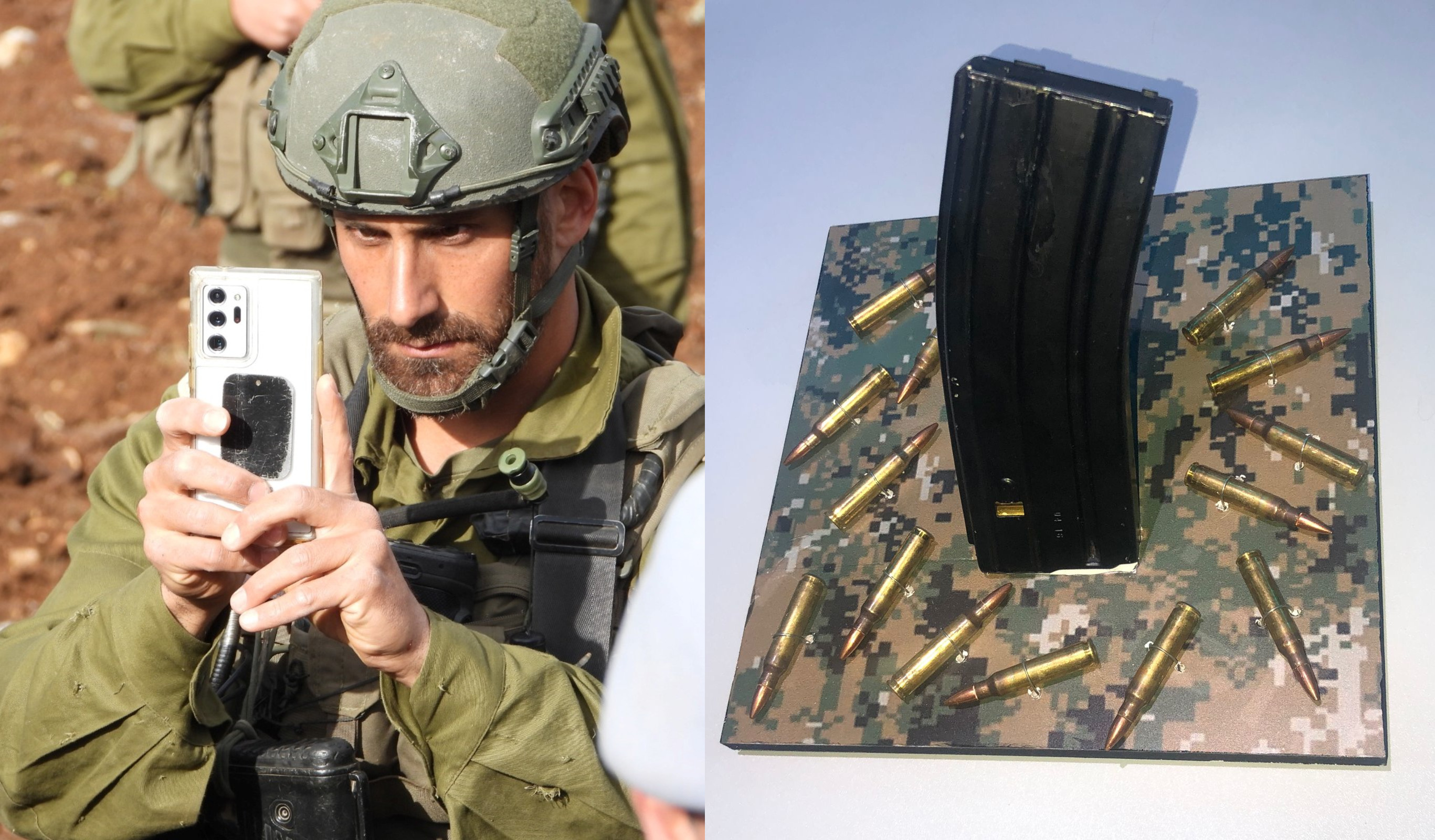 The magazine and the bullets were clearly displayed in order to highlight the extent of the humiliation and fragility the Israeli enemy has reached in face of the Lebanese Resistance.