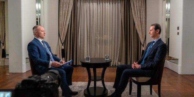 Syrian President Bashar Al-Assad gave an interview to Rossiya Segodnya Agency, during his official visit to the Russian Federation, in which he answered a wide range of questions in the political, economic and military files.