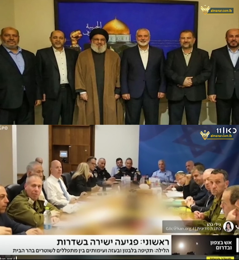 The Zionist circles also compared between the confused and clumsy performance of the Israeli security cabinet and the important decisions taken during a meeting between Hezbollah Secretary General Sayyed Hasan Nasrallah and Hamas command.