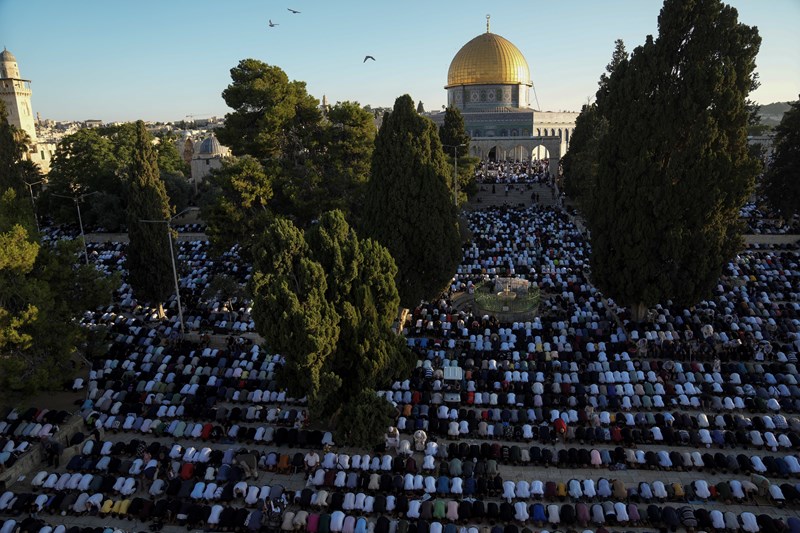 On the morning of Eid al-Adha, an estimated 100,000 Muslim worshippers gathered at Al-Aqsa Mosque for the traditional morning prayer.