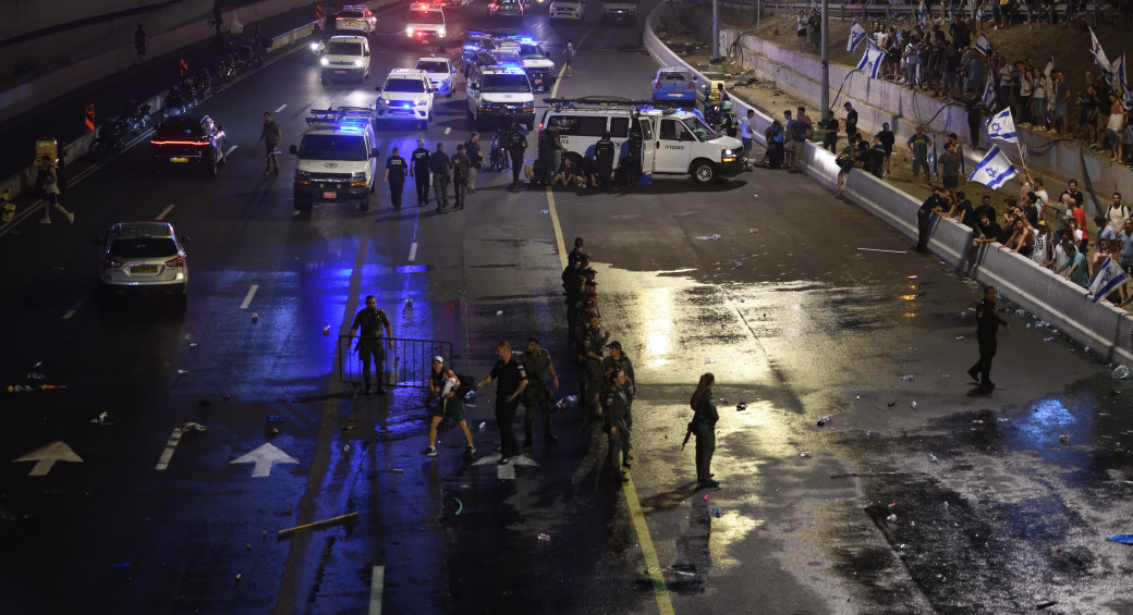 Using mounted police and water cannons, occupation authorities only managed to clear the major Tel Aviv thoroughfare after 1 a.m., though thousands continued to demonstrate at nearby Kaplan junction, where some 15,000 had massed hours earlier in reaction to the government coalition’s contentious “reasonableness” bill being approved on its final two votes.