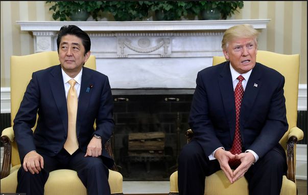 US President Donald Trump welcomed Japan’s Prime Minister Shinzo Abe to the White House Friday, greeting him with a brotherly hug, as the pair try to build a personal rapport.