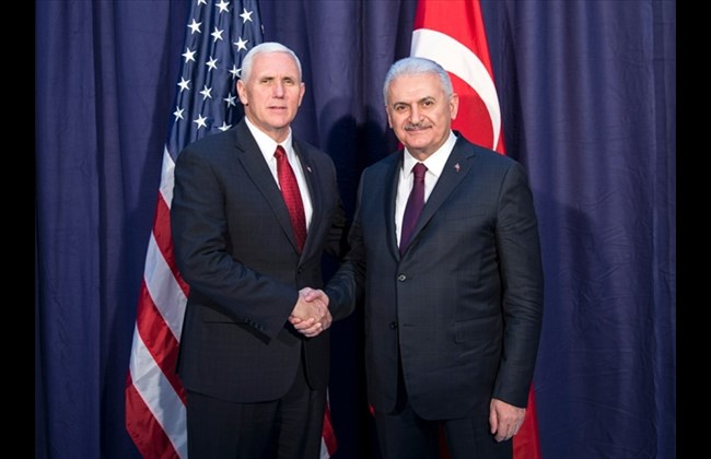 Pence and Yildirim met on the sidelines of a security conference in Munich, Germany, and discussed improving ties, boosting cooperation in the fight against terrorism and the need to work together to find a permanent solution in Syria.